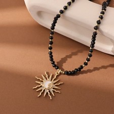 Fashion Beads Necklace Inlaid Rhinestones Alloy Sun Pendant Necklace for Women