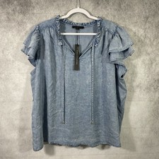 Jane + Delancy Chambray Blouse Womens Size 2X Blue Flutter Sleeve.