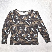 Tahari Blouse Womens Large Black Brown Leaf Print Puff Sleeve Botanical Tropical