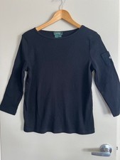 Ralph Lauren Womens Large Slim Black Cotton 3/4 Sleeve Logo Pocket Rib Knit Top